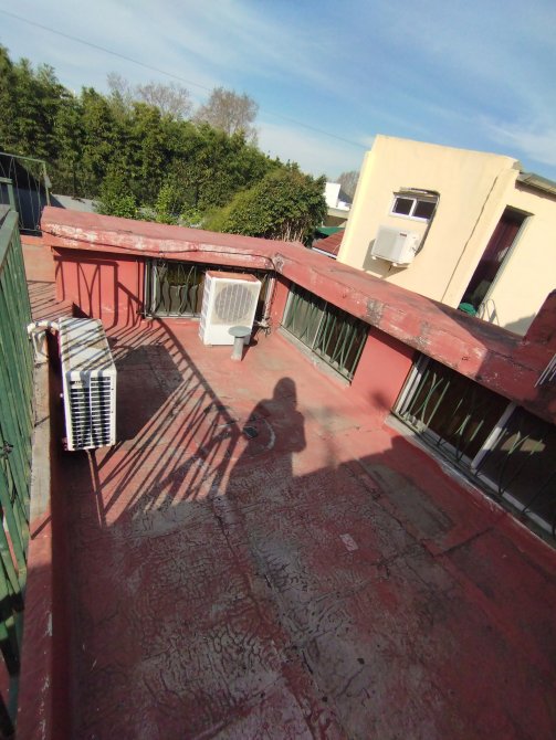 Patio con toldo rebatible y terraza.